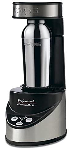 The ultimate in convenience and class, this commercial-quality martini maker allows for effortlessly preparing a martini at home. The unit's polished stainless-steel 20-ounce cocktail shaker features a built-in strainer, while its touchpad ensures easy operation. Simply add favorite martini ingredients using the 1-ounce shaker cap, turn the appliance on and watch the green olive light up, press Shake or Stir, and voila--a timeless cocktail is made. The cocktail shaker and cap clean up easily by hand, and the unit's exterior can be wiped down with a soft cloth. Great for a quiet evening at home or elegant cocktail parties, the 60-watt electric martini maker measures 10-4/5 by 7 by 15 inches and carries a five-year limited motor warranty.