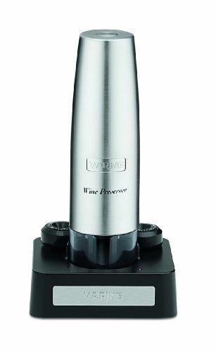 Enjoy a fragrant, flavorful glass of wine day after day with the Waring Pro Electric Wine Preserver. Includes AC adaptor, recharging base, and two wine stoppers with date indicators. Wine preserver removes air from wine bottle with a vacuum seal to maintain flavor.