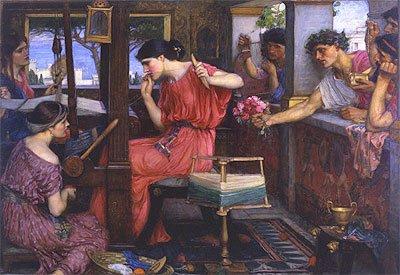 Medium: Canvas Art Print - Giclee / Artist: John William Waterhouse / Painting Title: (Penelope and the Suitors, 1912) / Actual Image Size: (11.1x16.1 in) (28x41 cm)