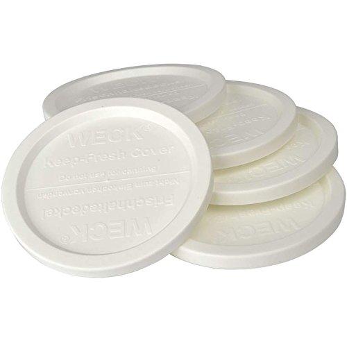 - ONLY DESIGNED FOR USE ONLY WITH WECK CANNING JARS, these flexible white plastic lids preserve the freshness of foods stored in the refrigerator or freezer. As the lids expand slightly, there is a lower chance of glass breakage when the food expands as it freezes.
