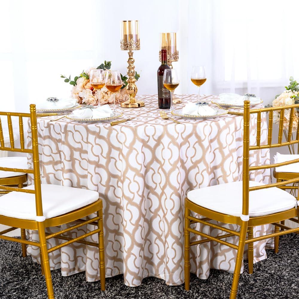 Wedding Linens Inc. Wedding Linens Inc. 120"" Round Miramar Scuba (Wrinkle Free) Tablecloth, Premium Print Pattern Tablecloth for Birthdays, Parties, Graduations, Weddings (Champagne), Orange, White
