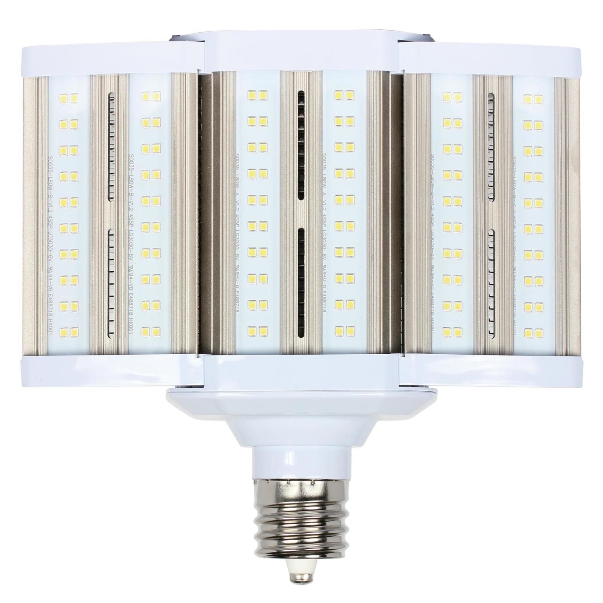 This Westinghouse expandable 80-Watt High Lumen Shoebox LED Light Bulb is an energy-saving replacement for 250-watt HID light bulbs. Ideal for large areas and parking lots that require extremely bright light sources. Durable and long-lasting LED performance means less bulb changes in hard-to-reach places. Suitable for use in open rated and enclosed only rated fixtures, approved for damp locations, and has a minimum bulb compartment requirement of 11.02 inches x 11.02 inches.