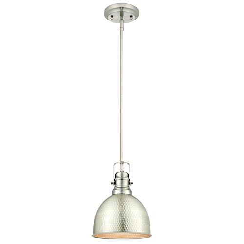 - One-light Pendant with hammered Brushed Nickel finish directs light downward; uses one 60-watt medium-base light bulb (not included)