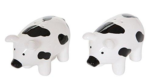 The cute black and white spotted pig design of this salt and pepper shaker set will add a hint of country style and charm to any kitchen or dining room.