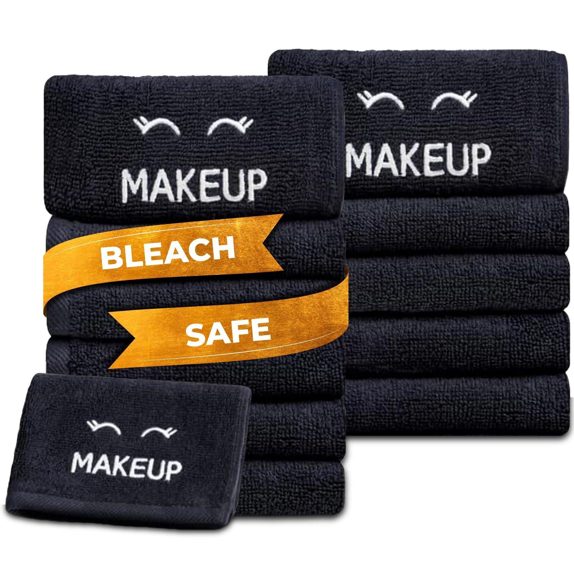 - Bleach Safe and Durable - White Classic black make up towels for face use richly pigmented dyes on durable fabric, ensuring no color bleed; Safe with anti-acne or anti-aging products, each black washcloth wont bleach out; Great for gently exfoliating a spray tan