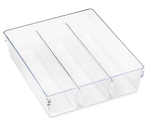 Whitmore 3 section clear drawer organizer features a sturdy clear resin construction. Filling the base of the drawer, this organizer tray helps to organize your kitchen gadgets, cosmetics, and accessories. The sturdy resin construction is also suitable for storing and organizing sewing, desk or craft supplies. It is great for organizing drawers in the bedroom, kitchen, bathroom or garage. Measures: 13. 78 L x 11. 81 W x 3. 54 H inches. Whitmore is a 4th generation family-owned and operated business. Since 1946, Whitmore has been dedicated to bringing organization home by creating products that simplify everyday life. Ensuring that those products are built with integrity, value, and innovation is our commitment to you. And our promise is that we will always be here for you should you ever need us as we stand behind our product 100%.