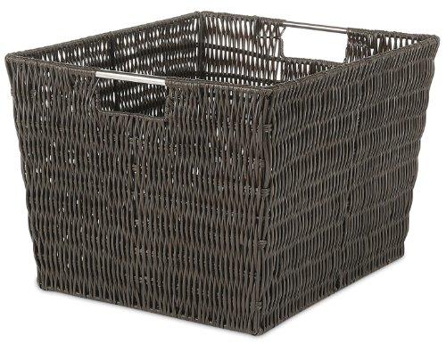 Whitmor's Rattique Storage Totes offer a stylish way to organize almost any space in your home or office. These totes look like rattan but are made of a durable easy to clean Rattique woven plastic. The chromed metal frame has built-in stainless steel handles for easy access and carrying. Easy to care for, just wipe with a clean damp cloth to keep it looking as good as new for years to come. Dimensions: 13.0 L x 15.0 W x 9.8 H inches