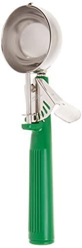 Winco #12 ice cream disher with one piece green plastic handle ICOP-12. Great for ice cream, mashed potatoes, cookie dough and more.