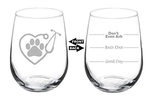 - Wine Glass Goblet Two Sided Good Day Bad Day Don't Even Ask Heart Stethoscope Vet Tech Veterinarian