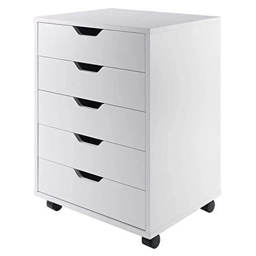 Use the Winsome Wood Halifax 5-Drawer Cabinet to help stay organized. A clean, simple design that you will find function to in just about any room of your home. Eliminate the appearance of clutter in your craft room, kitchen or kids room. The Halifax storage carts feature a multitude of drawers with cutout drawer pulls that allow for easy-open access and helps create an easily accessible storage unit. Store paper and other material used for a business in your in-home office or den. Sitting on four casters, two of which lock, allowing for easy mobility when needing to move or locking in place to use as a stationary. With a vertical design that helps to minimize the need for a lot of floor space, making this an ideal unit for a walk-in closet; store your jewelry, styling accessories, makeup pallet and brushes. Easy glide drawers with an interior dimension of 15.9W x 11.73D x 2.55H and a weight capacity of 20lbs each. Finished in white and constructed of a combination of sturdy solid beech wood and some composite. For additional storage, pair with other organizers from the Winsome Halifax collection. Conveniently packed and shipped in 1 box, that includes the hardware necessary for assembling. Replacement part request can be submitted directly to the manufacturer within 60 days from date of purchase