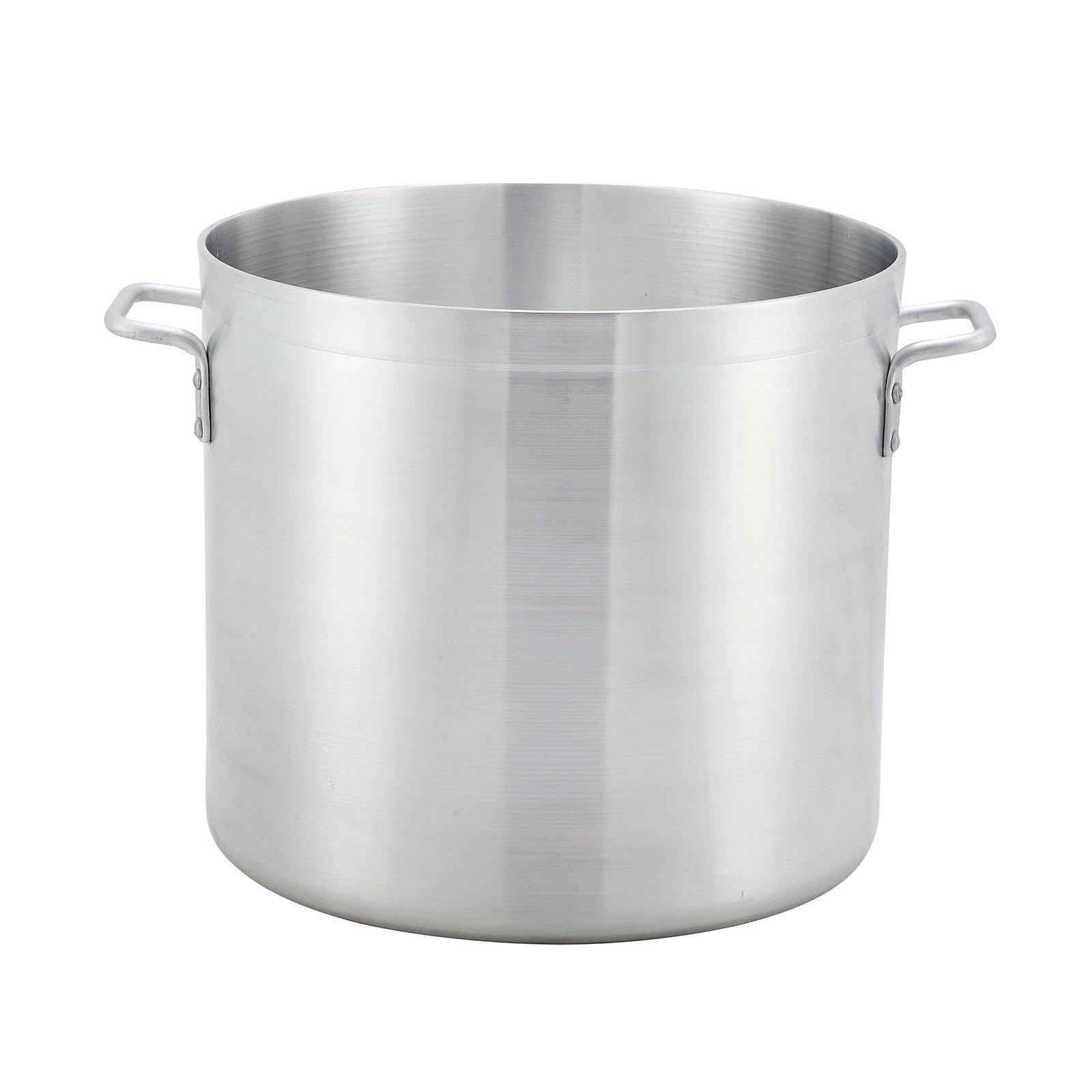The Winco ALST-10 is a commercial-grade 10 quart heavy-duty stock pot designed for daily use in commercial foodservice kitchens, institutions and restaurants. Made from 4mm thick 3003 aluminum, this large stock pot features a thick walls and reinforced rim. The heavy-duty base provides the even heating and cooking performance demand by todays top chefs. Two thick aluminum handles offer secure leverage when transporting and maneuvering the pot. The extra-wide base and tall walls make this 10 quart stock pot ideal for soups, chilis, pastas and more. Lid sold separately. NSF certified.