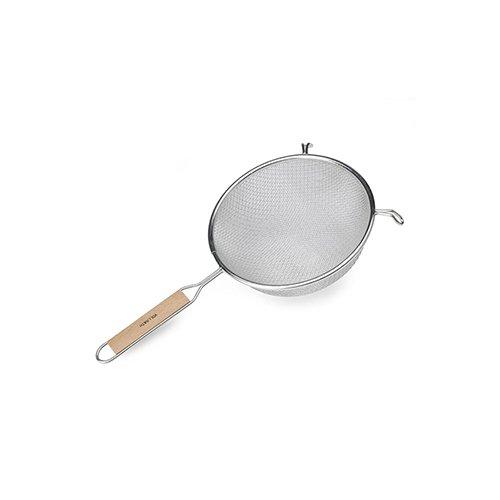 Wire Strainer, Mesh Size Medium Double Mesh, Product Type Wire Mesh Strainer, Dishwasher Safe No, Handle Length 6 1/2 in, Handle Material Wood, Handle Type Lacquered Wood, Material Tin, Overall Length 14 1/2 in, NSF Certified No