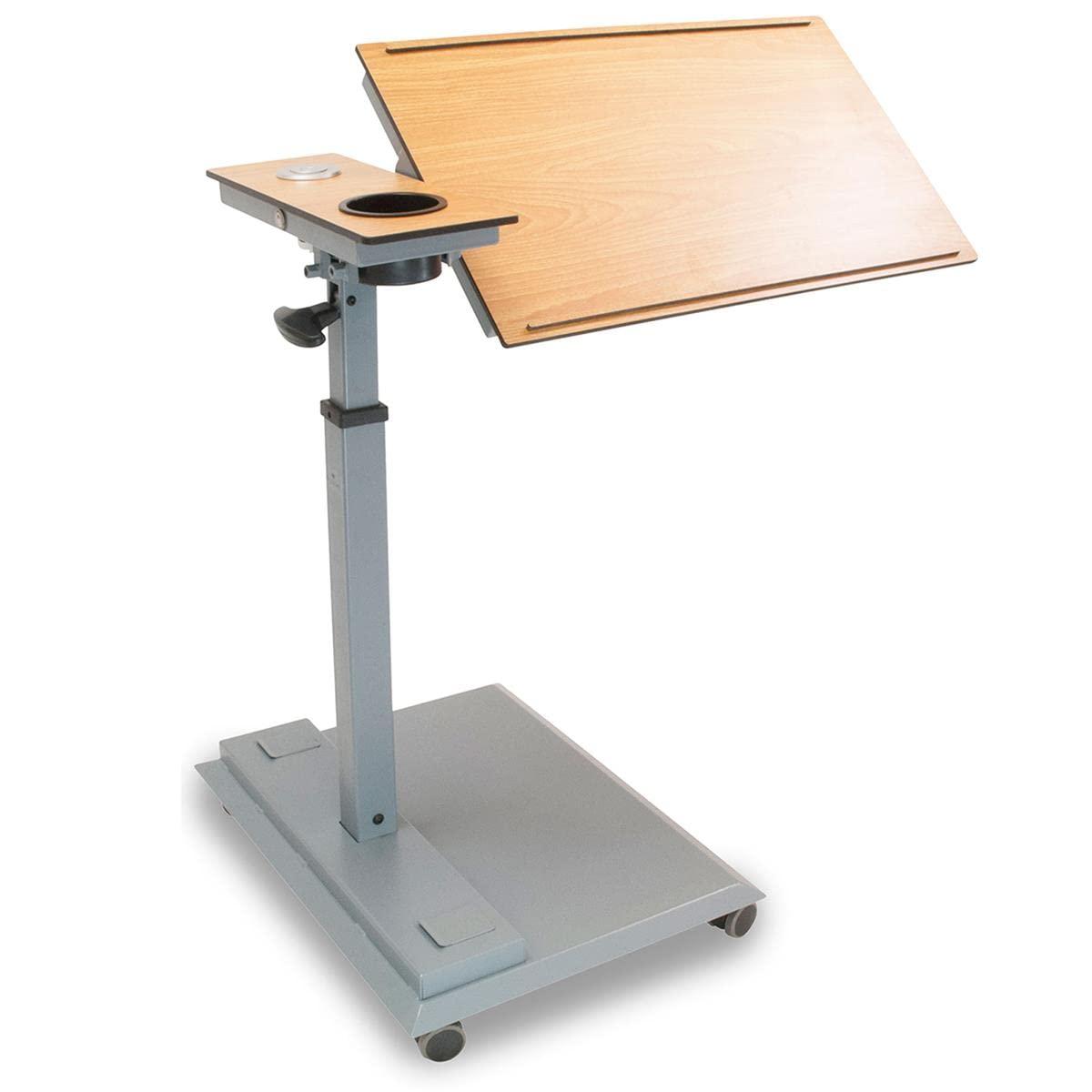WiseLift Table 360 Swivel Up to 45 Tilt Height Adjustable Built-in Cup Holder and 3 USB Charging Ports (Wood)
