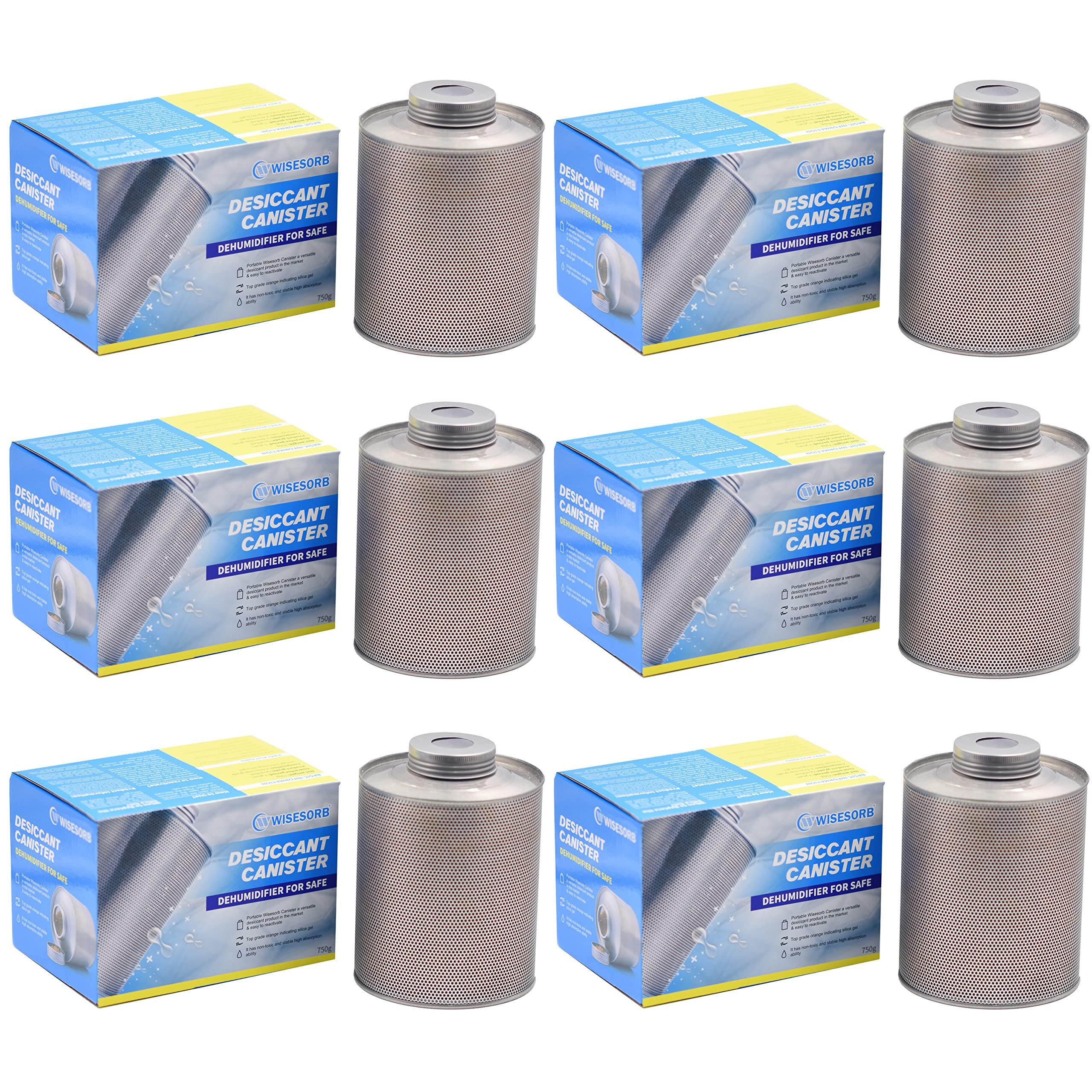 - Product Dimensions, Independent Packaging, and Package Includes: The tin canister measures 5 and 3/4 inches in height and has a diameter of 4 and 1/4 inches. Each package includes 6 desiccant canisters, each weighing 750 grams, filled with indicating silica gel. To ensure quality, each desiccant canister is individually sealed in a plastic bag and packed in a carton to prevent moisture absorption during transit and facilitate convenient storage.