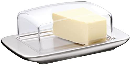 The WMF Loft butter dish measures 18 cm x 9 cm and has a simply stylish design. The lid is made from the highest of quality clear plastic and is complemented with a Cromargan 18/10 stainless steel matt finished dish. The lid sits comfortably on top of the dish and can easily be removed when required by simply lifting.