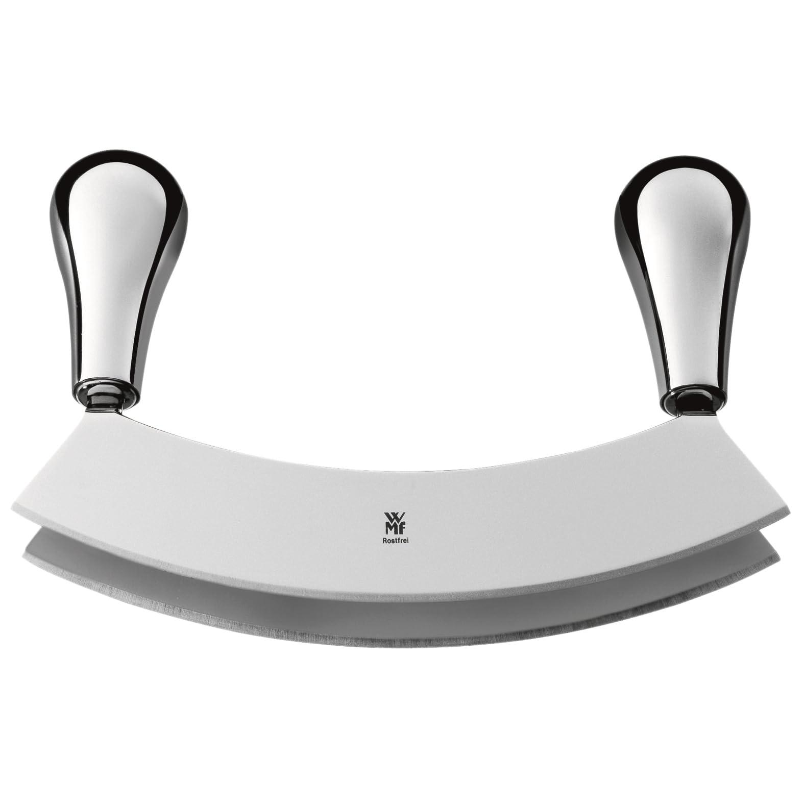 A professional, double-blade design make the Triangle Germany Mezzaluna Knife an easy-to-maneuver, highly efficient kitchen tool for mincing herbs and spices like basil, thyme, rosemary and dill and chopping and dicing nuts, garlic, onion and other veggies. A great way to achieve uniform cuts and desired textures while significantly reducing prep time, this versatile mezzaluna can also be used to chop salad. Featuring premium stainless steel from Solingen, Germany, blade is hardened for a harder, sharper, more durable design and hand sharpened according to Solingen craftsman's tradition for unparalleled strength and longevity. The 2 ergonomic anti-slip polypropylene handles are easy to grip, provide balance for steady and controlled rocking and keep your hands and knuckles safely away from the blade. Made in Solingen, Germany, each blade measures 7" long x 1-1/2" wide and each handle measures 2-1/4" high. Food and dishwasher safe but hand wash for best results. Resharpen as needed. In 1946, Erwin Hill founded "Hill Metal Fabrication" and started manufacturing rotary whisks from a patented design. Over the years, the product range increased, encompassing a wide range of kitchen tools, and the Triangle brand was registered in 2002. Working closely with local partners in Solingen, Germany, to deliver excellent on-the-job stainless steel manufacturing, Triangle is a third-generation family-owned company committed to quality, functionality and sustainable production.