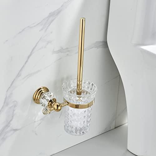 WOLIBEER Crystal Toilet Brush Holder Set, Decorative Design Toilet Bowl Brush Head with Polished Gold Brush Handle Wall Mounted for Bathroom