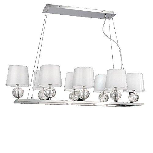To add a little extra light in your home consider the Serena Collection 8-Light 83 in. Hanging White Large Pendant. The miniature lamps are perched on a silver frame. The silky shades help add a clean and contemporary appearance.