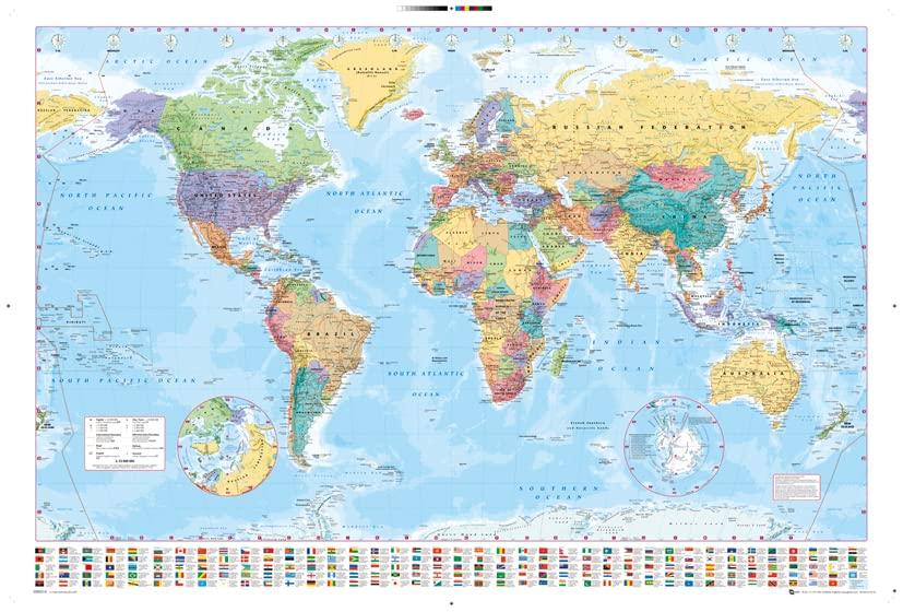 World Map Political Classroom Educational Country Flags Cool Wall Decor Art Print Poster 36x24