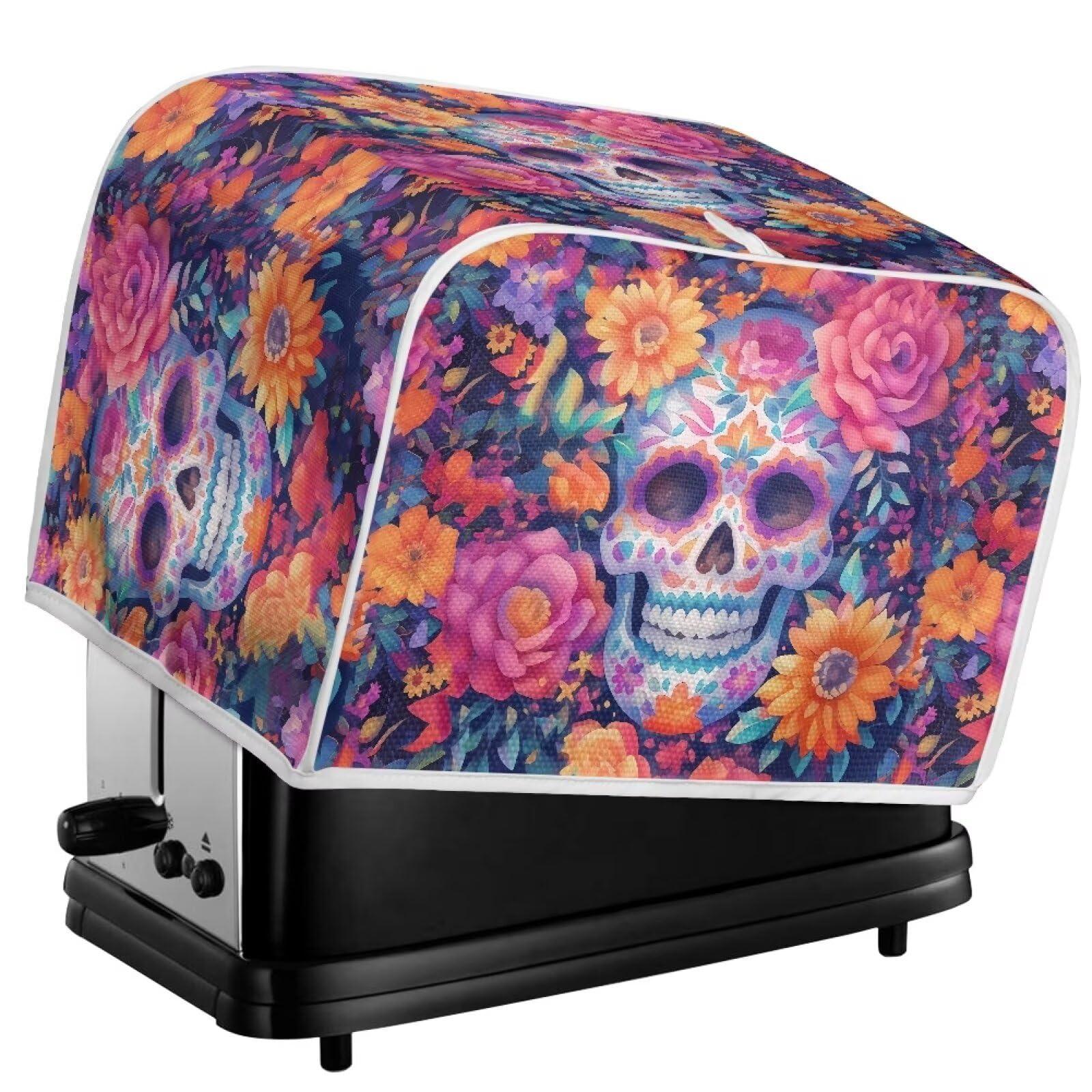 Xarleslyna Xarleslyna Mexican Skull Floral Toaster Cover 4 Slice, Day Of The Dead Flowers Small Kitchen Appliance Foldable Dust Covers Home Decor, Water Resistant