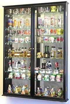 Hand made from imported Australian beech wood. This furniture grade Shot Glass display case cabinet is of beautiful design and construction, very detailed and attractive, but also very affordable. This display case is perfect for displaying those special shot glasses you have collected. You can use the case for regular shot glasses, shooters, and other misc items. This particular model has a mirror backing, with beautiful crown moldings at the top and bottom of the frame. Display case can hold roughly around 144 standard size shot glasses or 72 taller shooter glasses. The shelves are adjustable, so you can adjust them as you see fit. A total of 11 glass shelves are included + the bottom base. For a total of 12 shelves. Display case comes standard with 98% UV Acrylic Door. A must have for protection from the sunlight, as well as keeping dust out. Heavy Duty lockable latches keep the case safe and secure. Case comes fully assembled with all mounting hardware included. (shot glasses shown are not included) Dimensions: 35"H X 26"W X 3.75"D Space between shelves: 2 5/8" / adjustable
