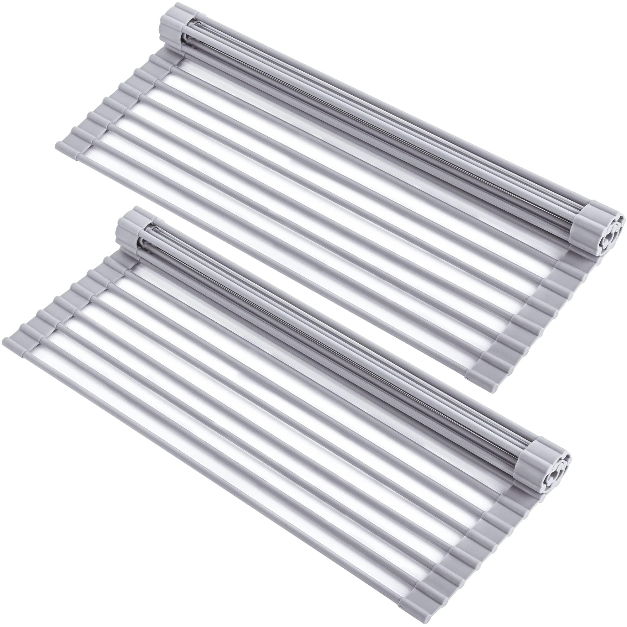 YIHONG 2 Pack Roll Up Dish Drying Rack, 17\" L x 13\" W Over The Sink Dish Drying Rack, Kitchen Multipurpose Foldable Dish Drainer for Sink Counter,Gray