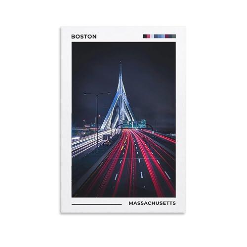 ZejaL Zakim Bridge Poster, Boston Poster, Cityscape Poster, MA Poster, Massachusetts Travel Art Wall Decor Poster Print Decorative Painting Canvas Wall Art Living Room Posters Bedroom Painting 16x24inch(40x