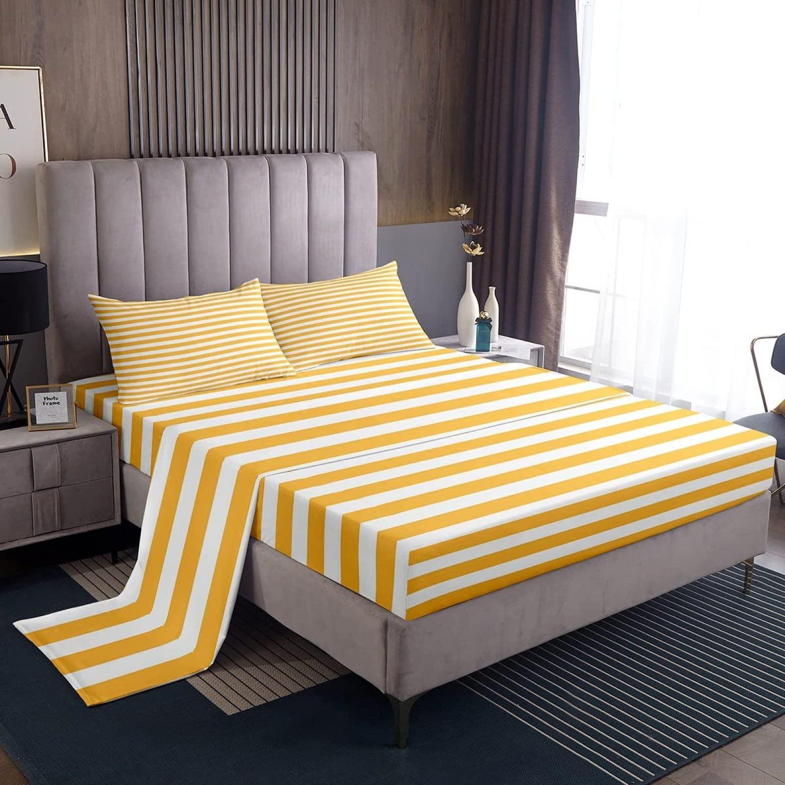 zcsm Yellow and White Striped Sheets King Size - Stripe Bed Sheets, Soft Microfiber & Deep Pocket & Wrinkle Free Patterned Bedding Sheets & Pillowcases, 1 Fitted Sheet, 1 Flat Sheet, 2 Pillow Cases