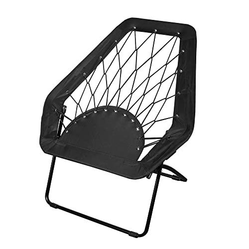 - Black 600D polyester rim frame is made of steel for durability and reliability: This durable bungee chair is made reliable with a steel frame, this ensures your safety while sitting on the chair!