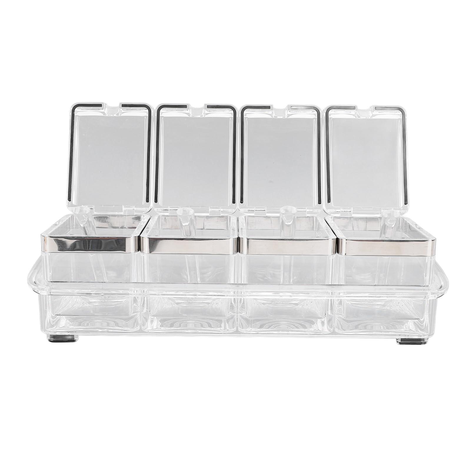 - [Ample Supplies] Receive 1 clear seasoning rack box with 4 spoons for all your kitchen needs.